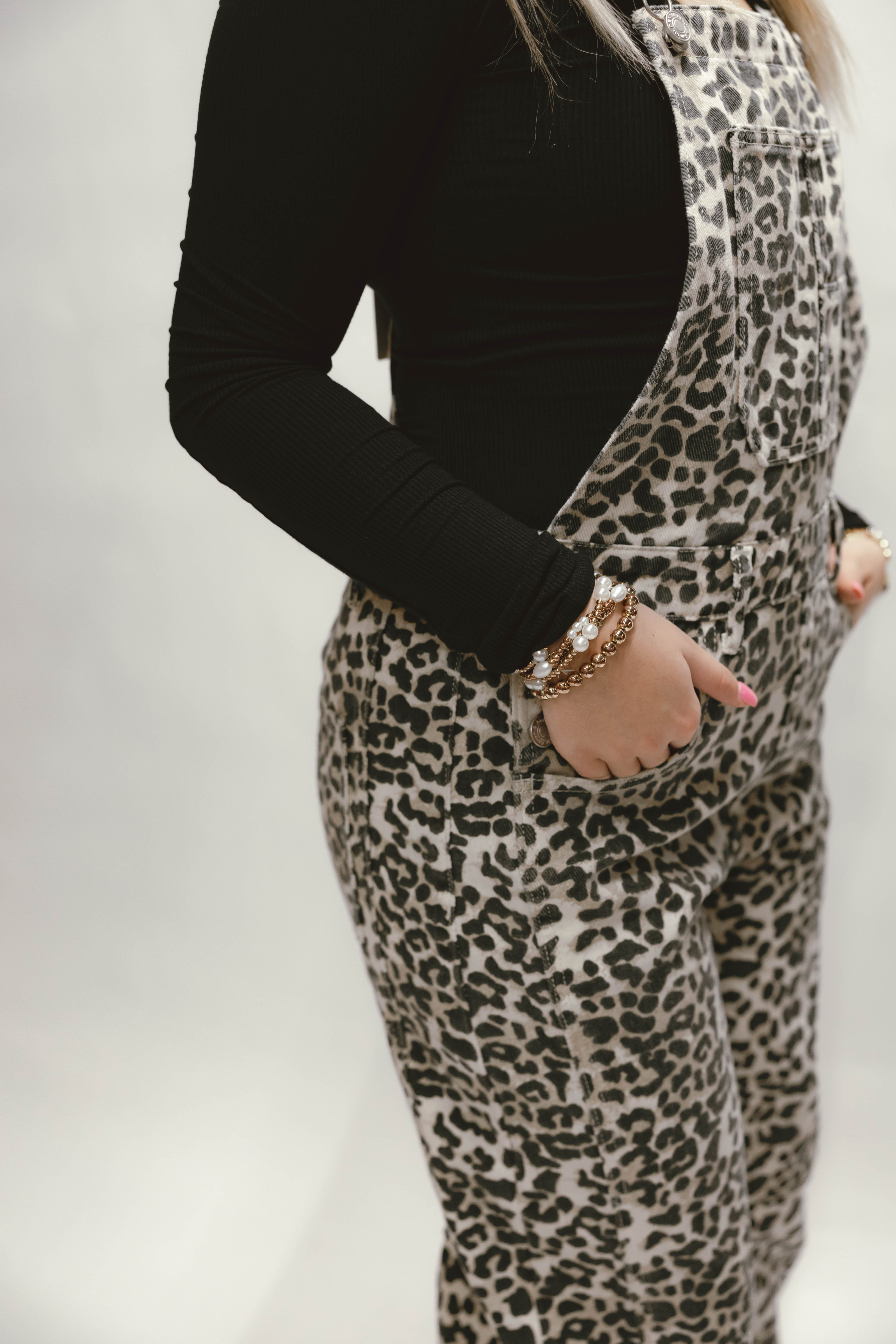 Laid-back meets bold style in these slouchy leopard denim overalls. Featuring a relaxed fit, allover animal print, and classic overall details, they bring a playful edge to casual dressing. Perfect for layering over tees, tanks, or cozy knits year-round.