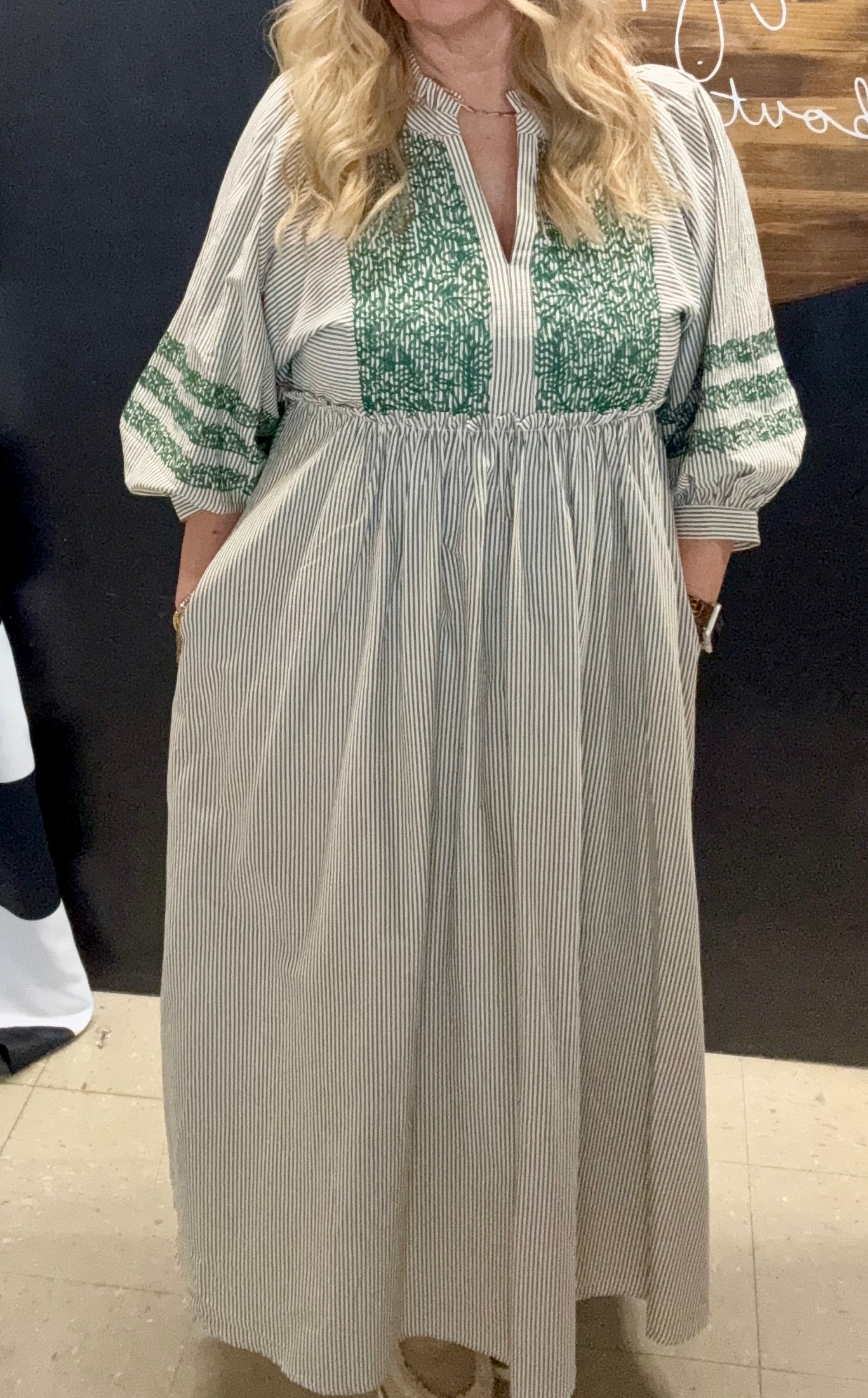 The Ela Embroidered Stripe Midi- Erin Rose Boutique