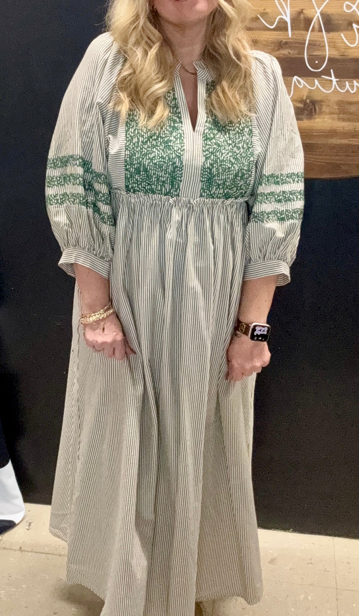 This dress brings effortless charm with its blend of timeless stripes and delicate embroidered details. Designed with a flattering midi length, this dress offers an easy, breezy silhouette that transitions seamlessly from day to night. Lightweight and versatile, it’s the perfect piece for brunch dates, weekend outings, or casual gatherings.