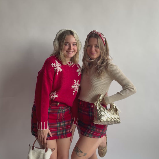 Celebrate the season in our Gloria Checkered Plaid Holiday Skort, featuring a festive check print, comfy built-in shorts, and a flattering fit perfect for holiday outings and winter style.
