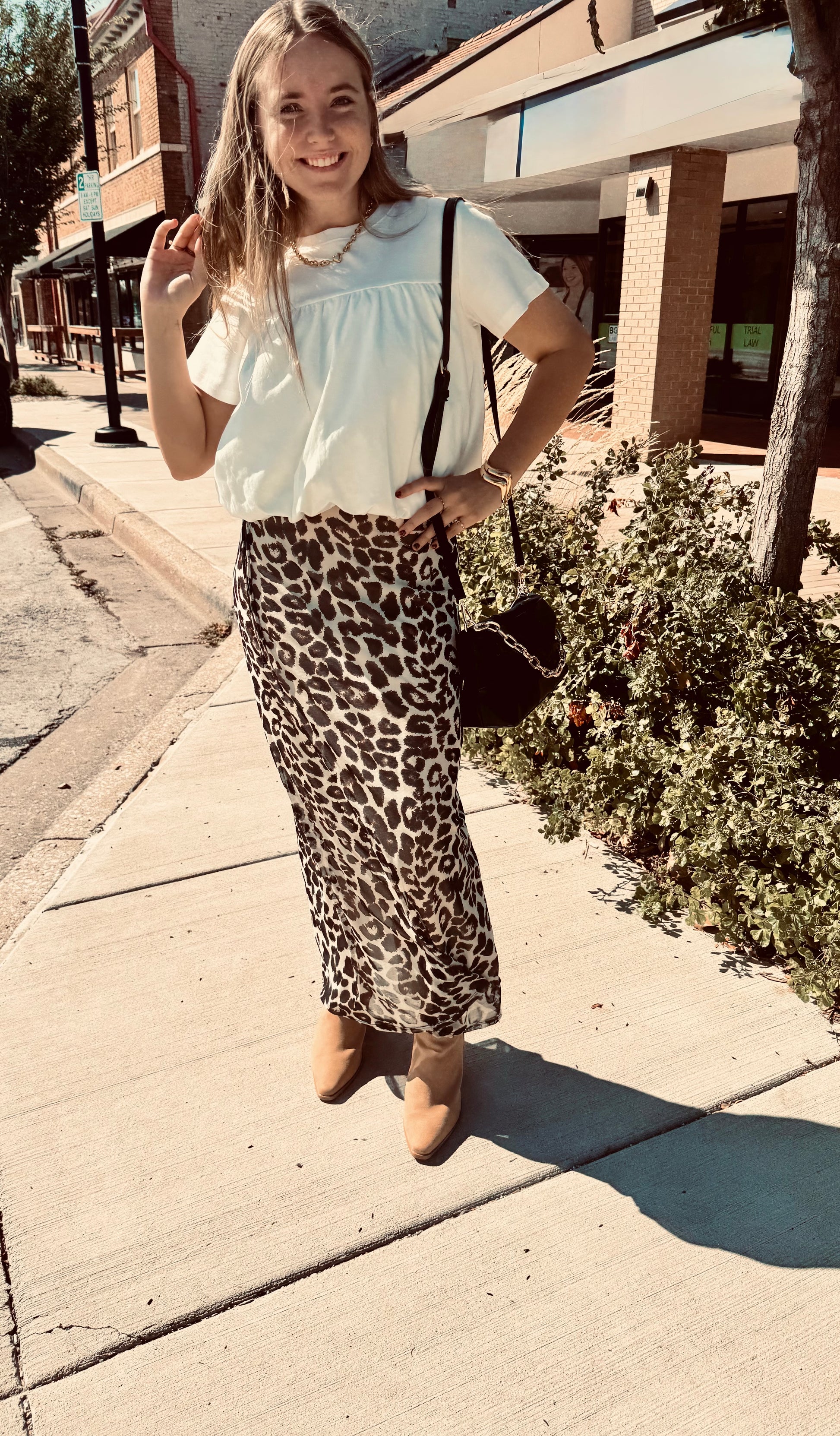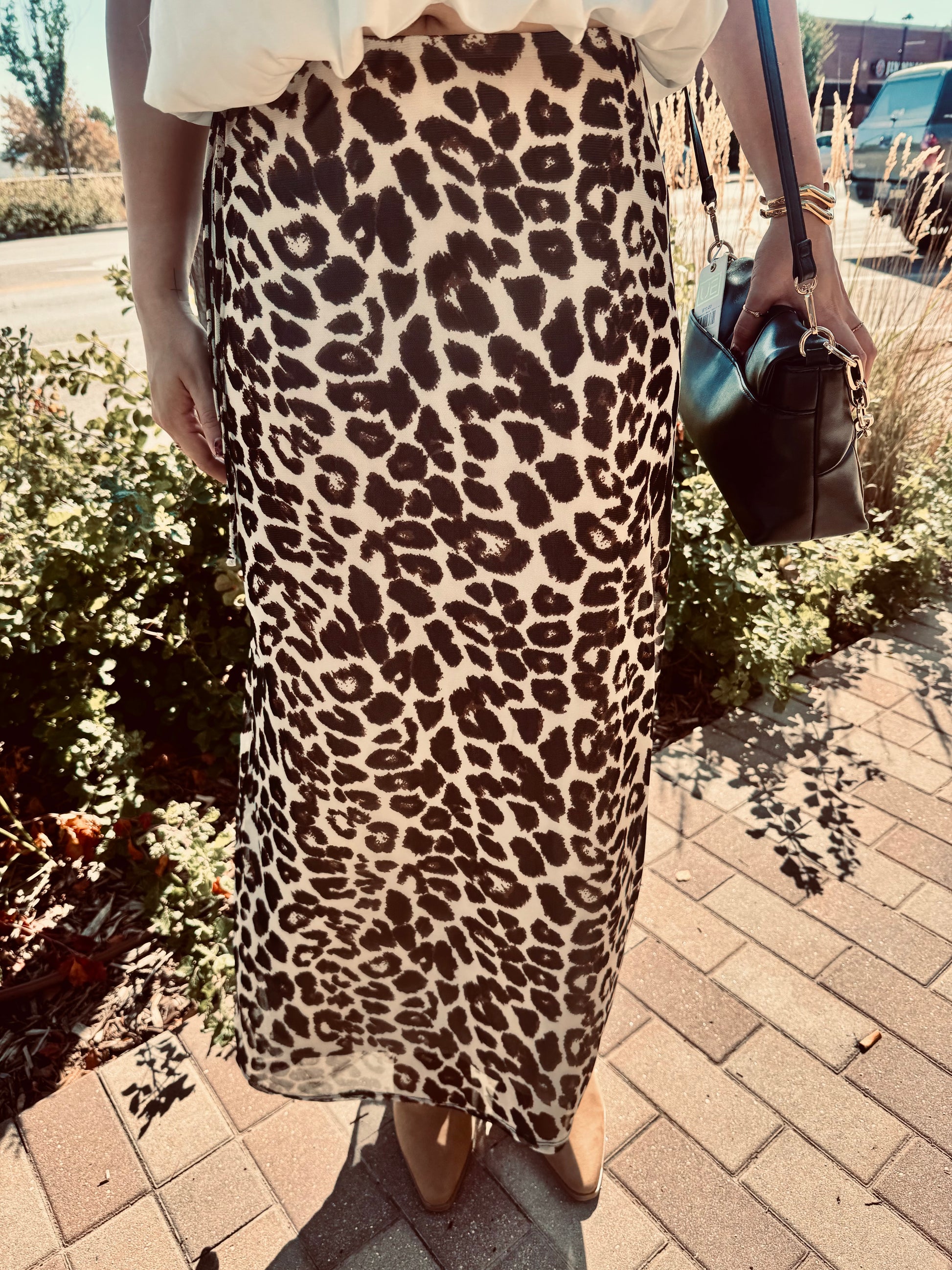Unleash your wild side with our Leopard Print Front Tie Slit Maxi Skirt, the ultimate statement piece for any wardrobe. Designed with a flattering wrap detail and a flowy, ankle-grazing silhouette, this skirt brings effortless style to both casual days and chic nights out. The bold animal print adds just the right touch of sass while keeping things timeless. Pair it with a simple black tank for an easy everyday look or dress it up with heels and a sleek blouse for date night.