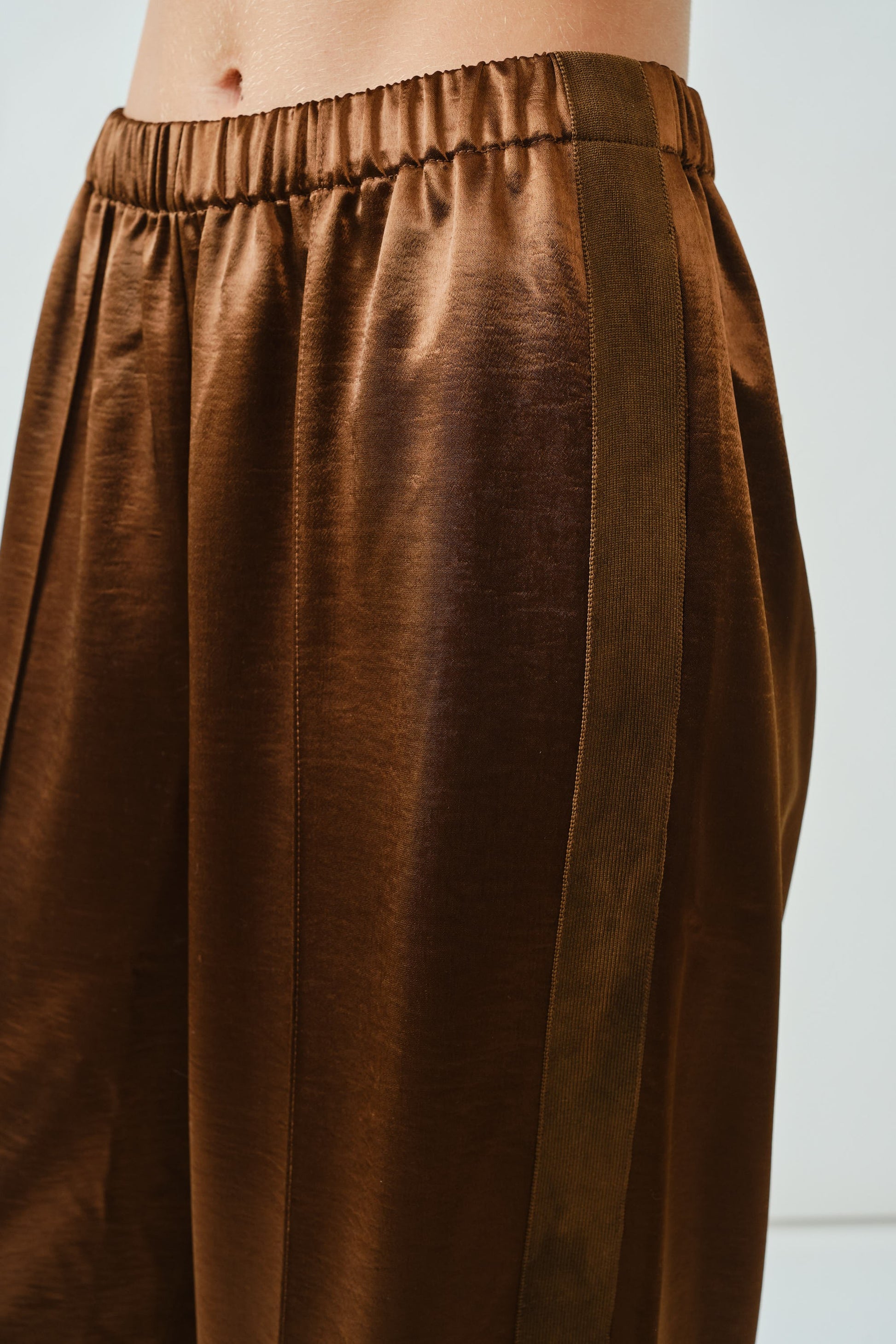 These pants crafted from a heavy-weight satin fabric. Designed with a relaxed fit and side tape detail, they're perfect for both casual chic and dressed-up occasions.