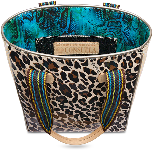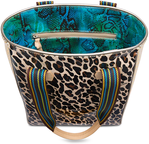 The Chica Tote is the smaller version of our signature Classic Tote. With a slim silhouette perfect for life-on-the-go, the Chica carries all you need with ease. Topped with comfortable woven handles, this multi-functional tote is trimmed in natural leather and crafted to hold its shape. Our tote features a roomy interior and pockets.