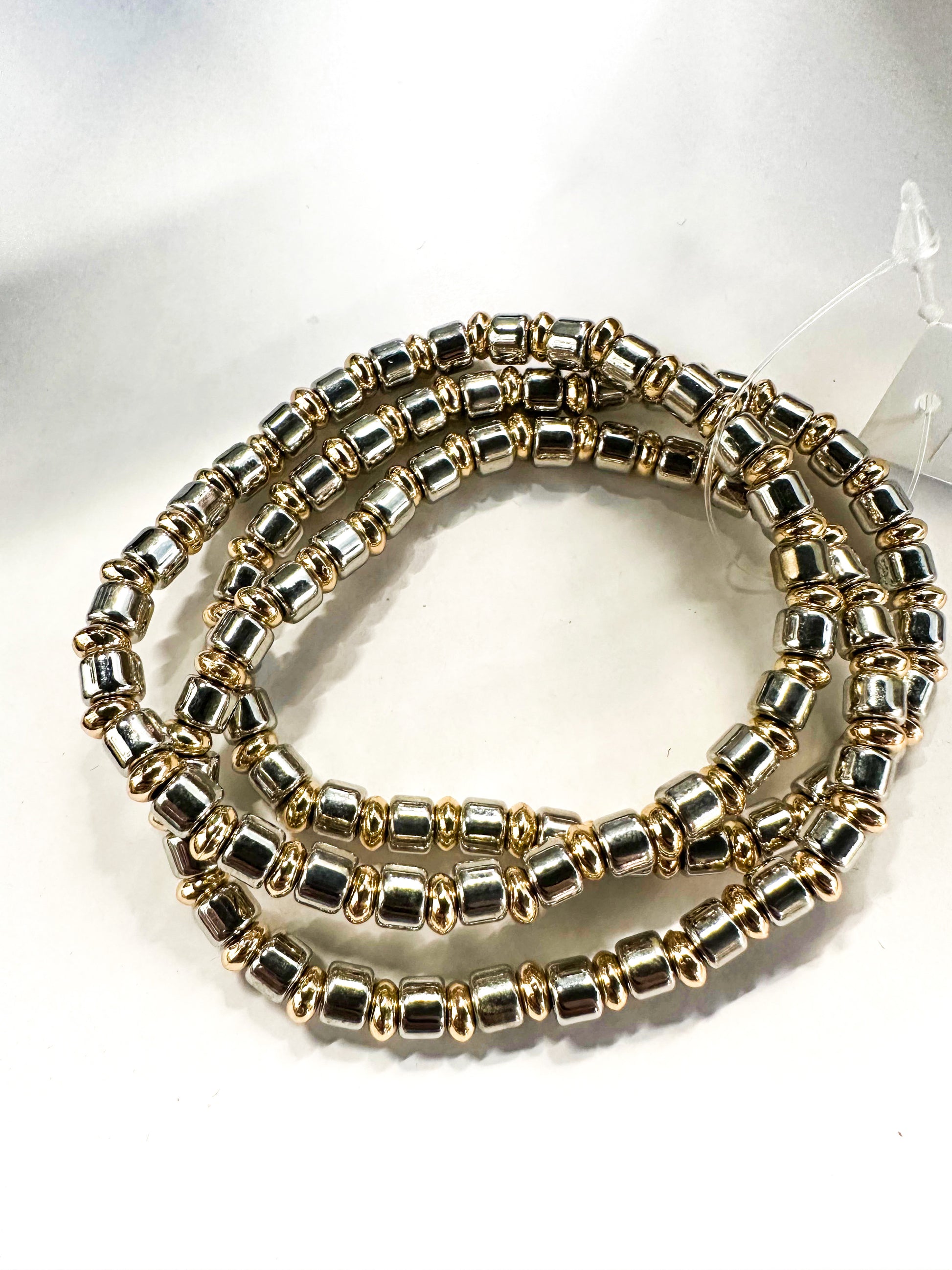 Rock a versatile look with the S/G Bead Bracelet Set! This set features a mix of gold and silver beads, adding an effortlessly stylish touch to any outfit. Perfect for layering or wearing alone, this bracelet set is a must-have for any jewelry collection. Shine on with this unique and playful accessory.