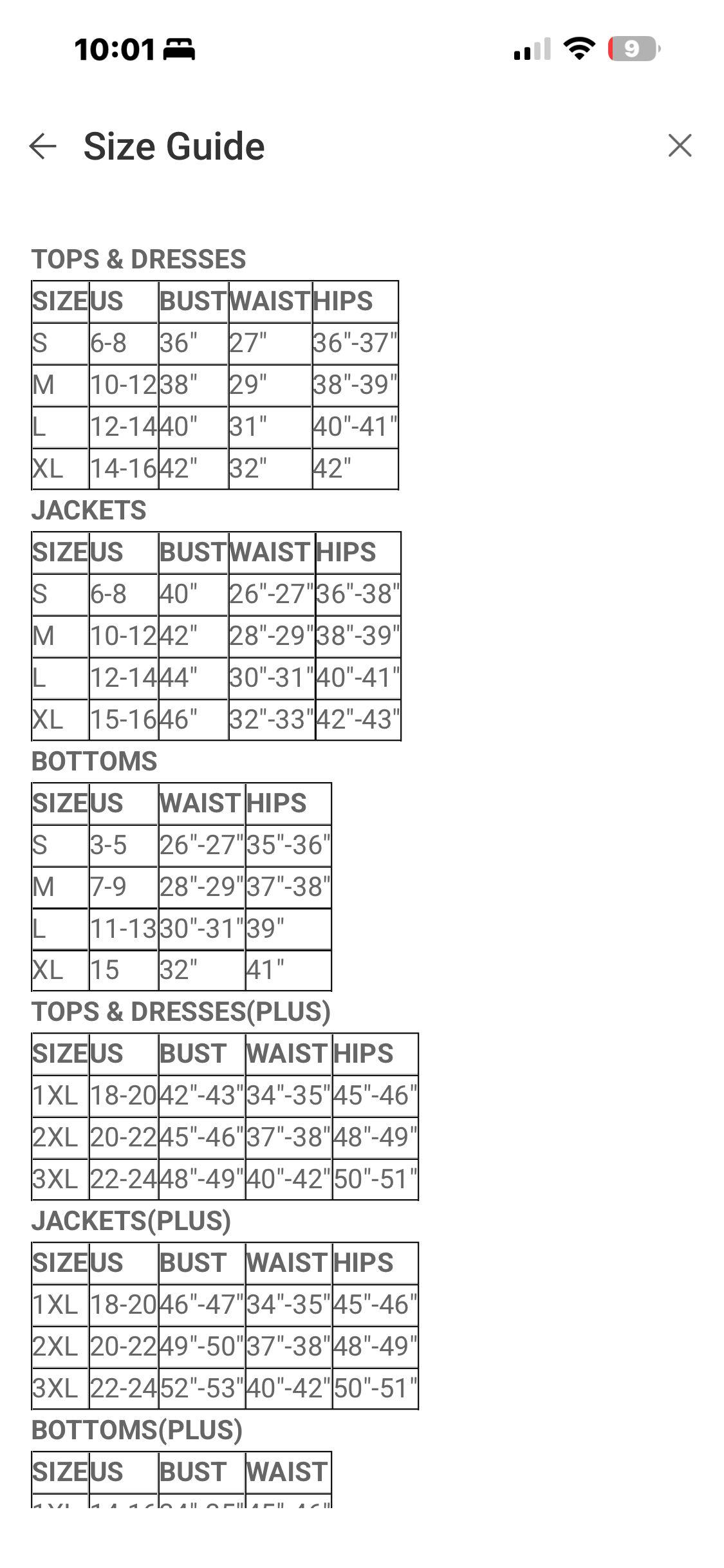 sizing: