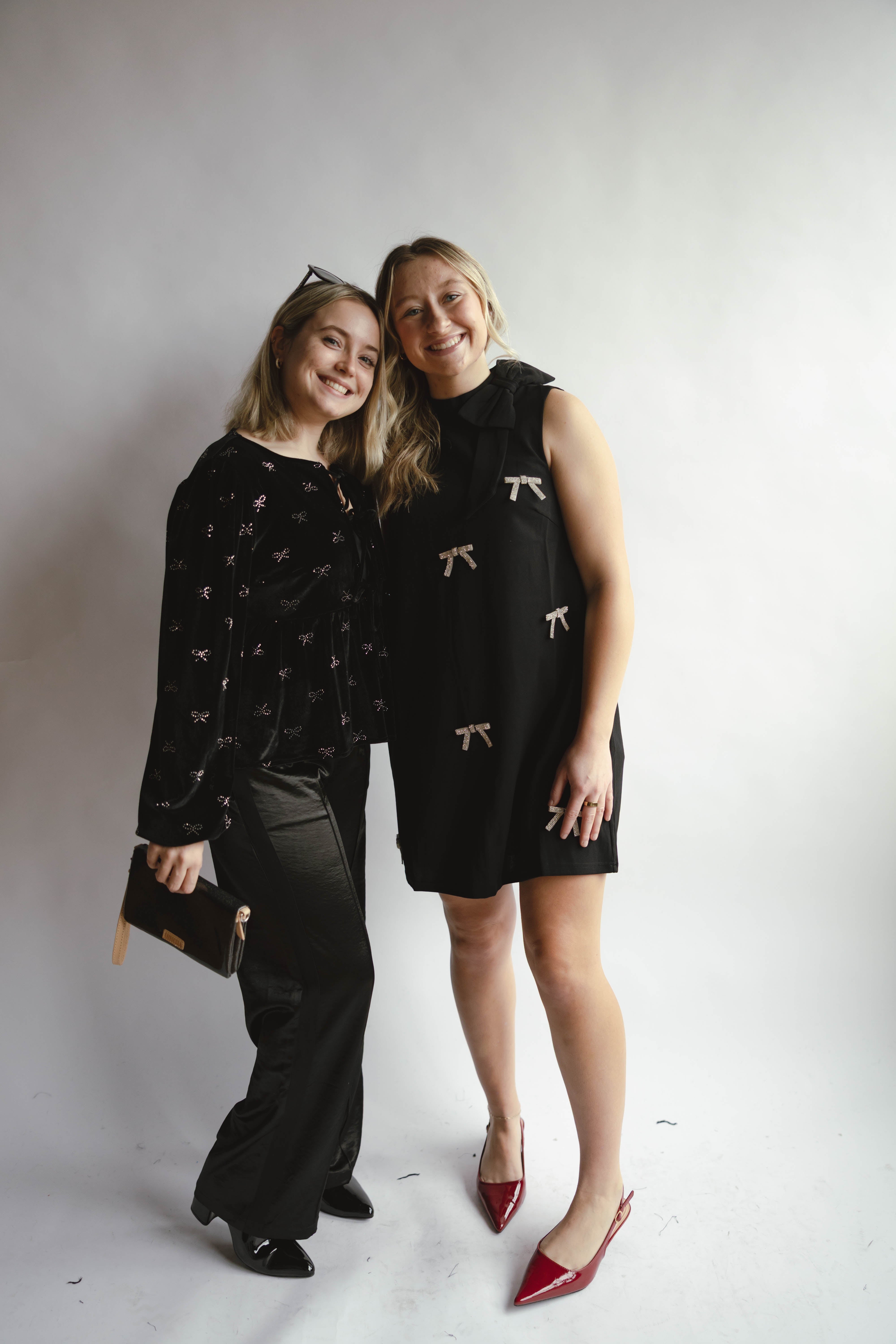 Turn heads in the Tina Bow Tie Velvet Top—luxurious velvet, a feminine bow detail, and the perfect touch of holiday elegance.