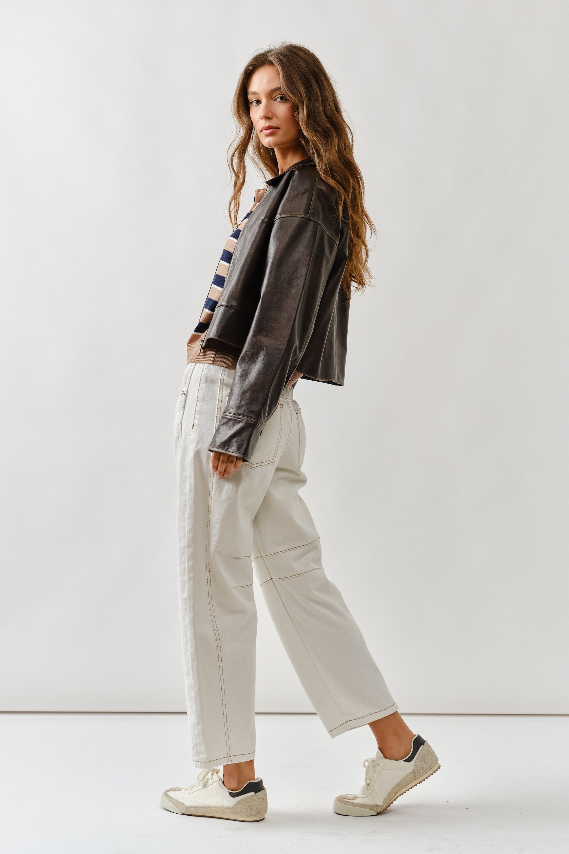 Vintage Washed Leather Jacket-Erin Rose Boutique
