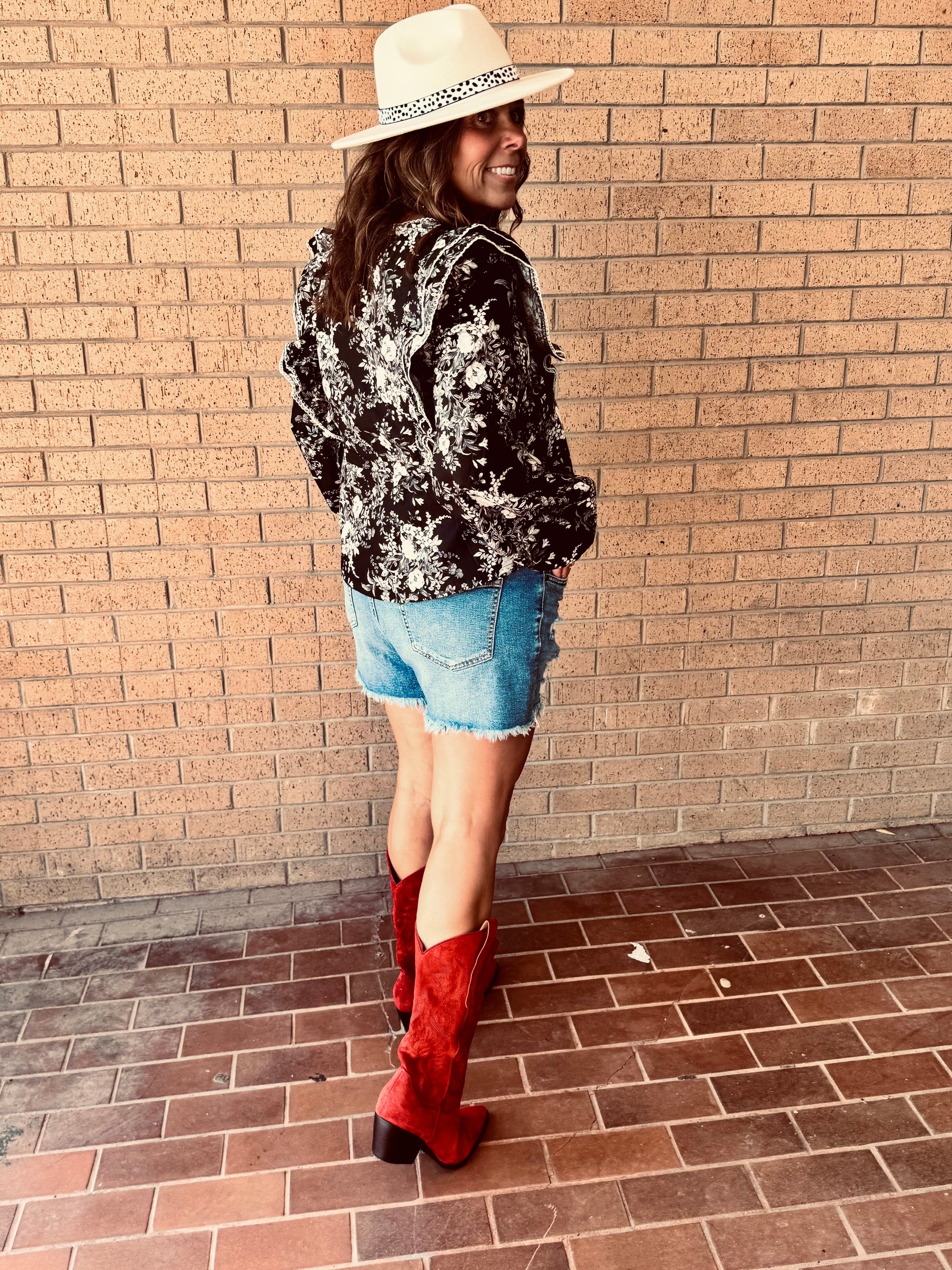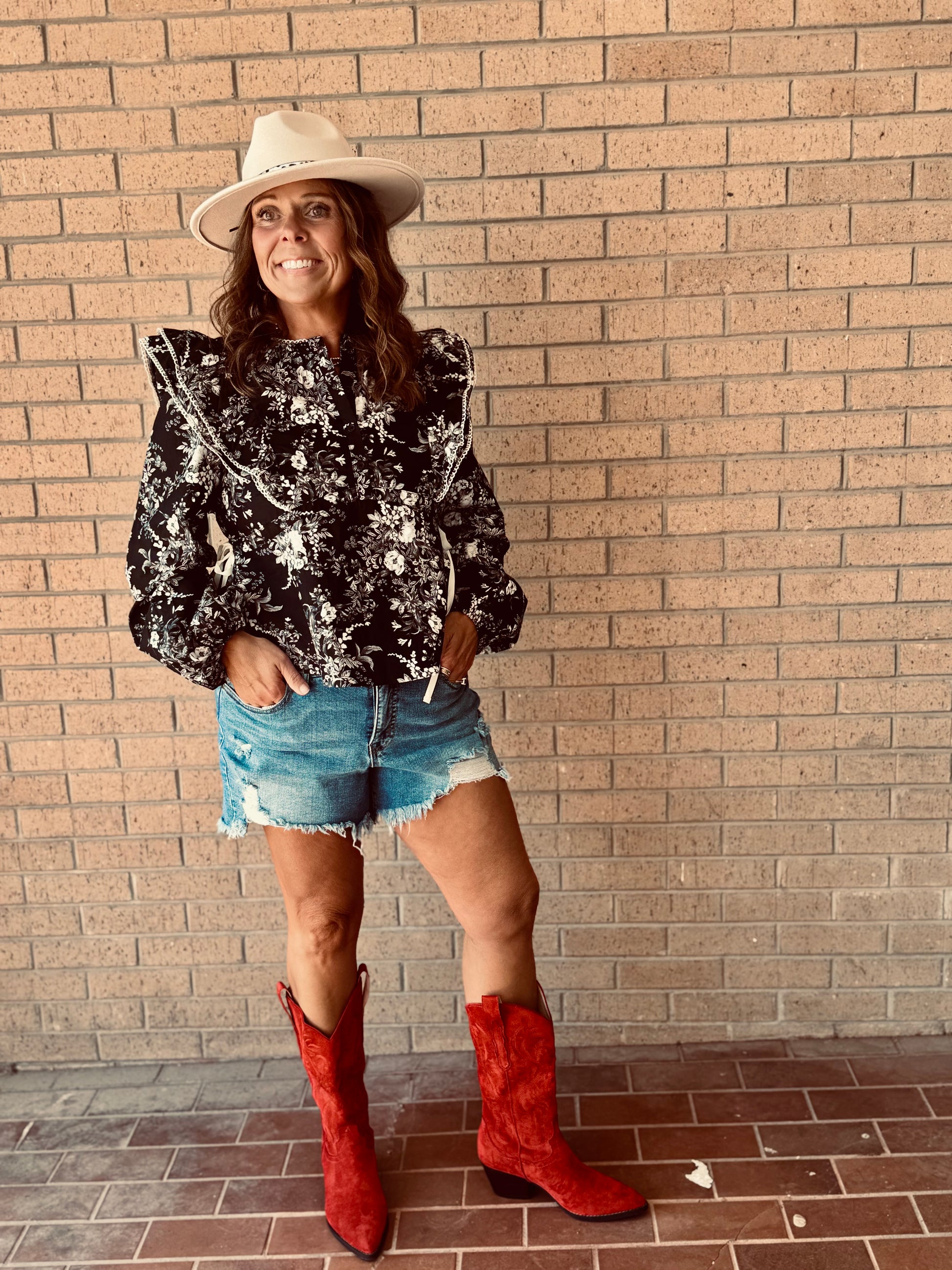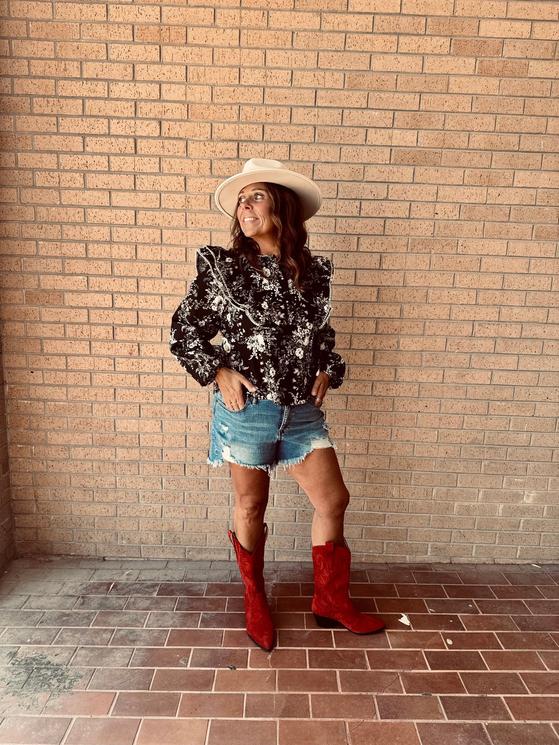 Victorian Floral Ruffle Blouse-Erin Rose Boutique